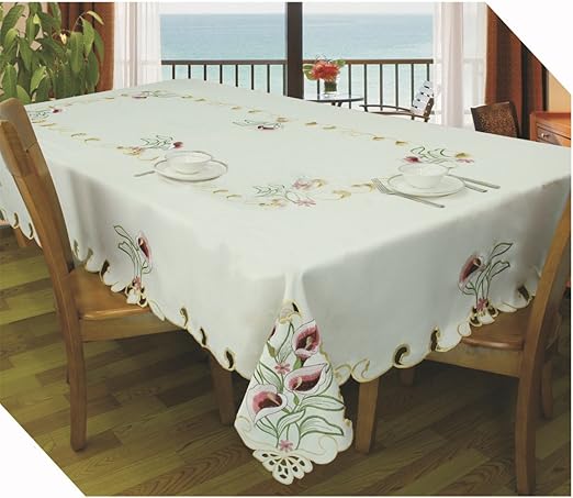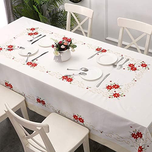Amazon Com Christmas Tablecloth Embroidered Christmas Flowers White Big Size Table Cloth Rectangle 70x108 Inches 175x265cm Home Kitchen